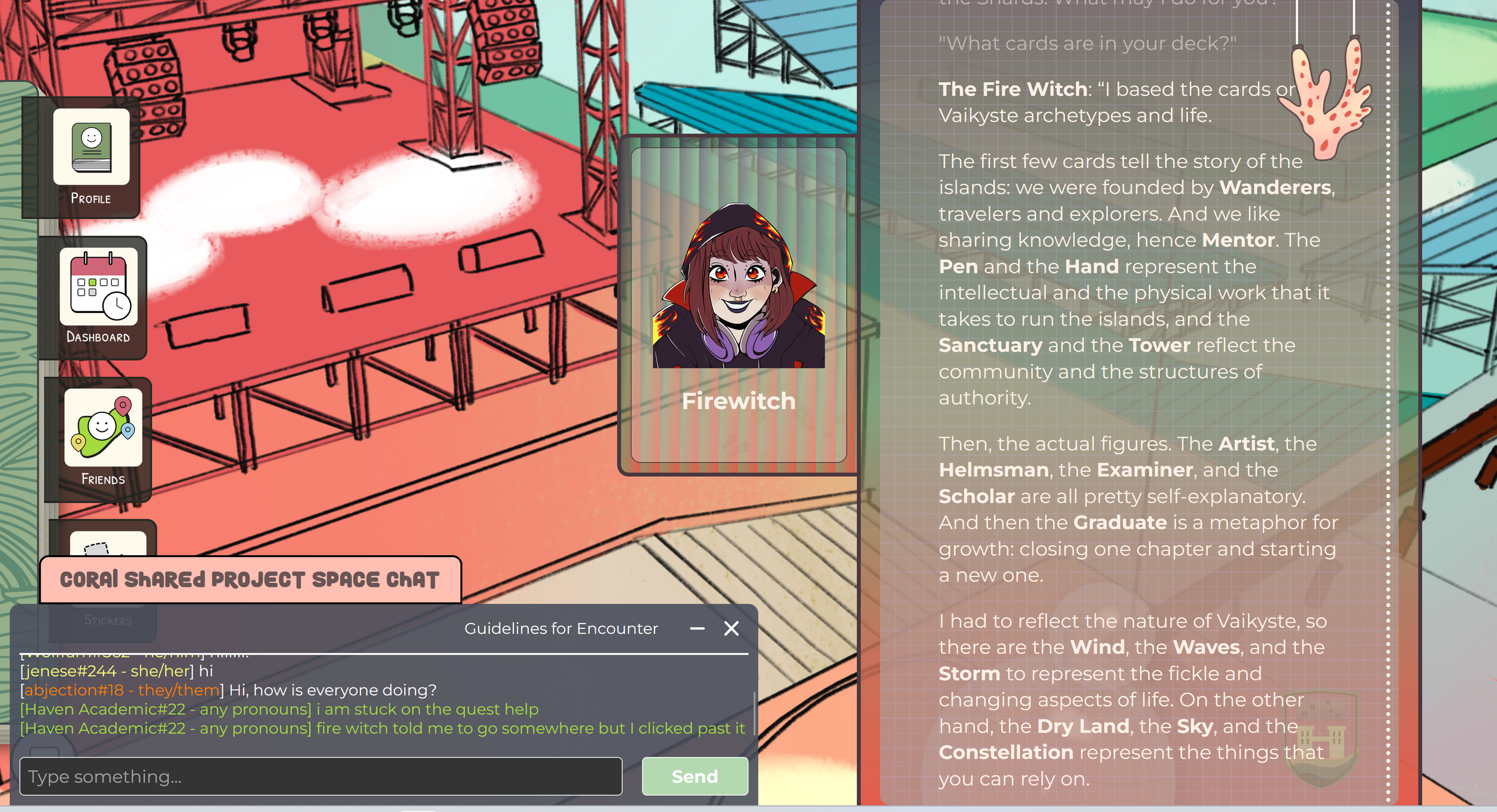 Haven is a game developed by the Weston Game Lab for the University of Chicago. It takes the incoming students on a colorful journey across four memorable islands and teaches them the values of the University and its community: